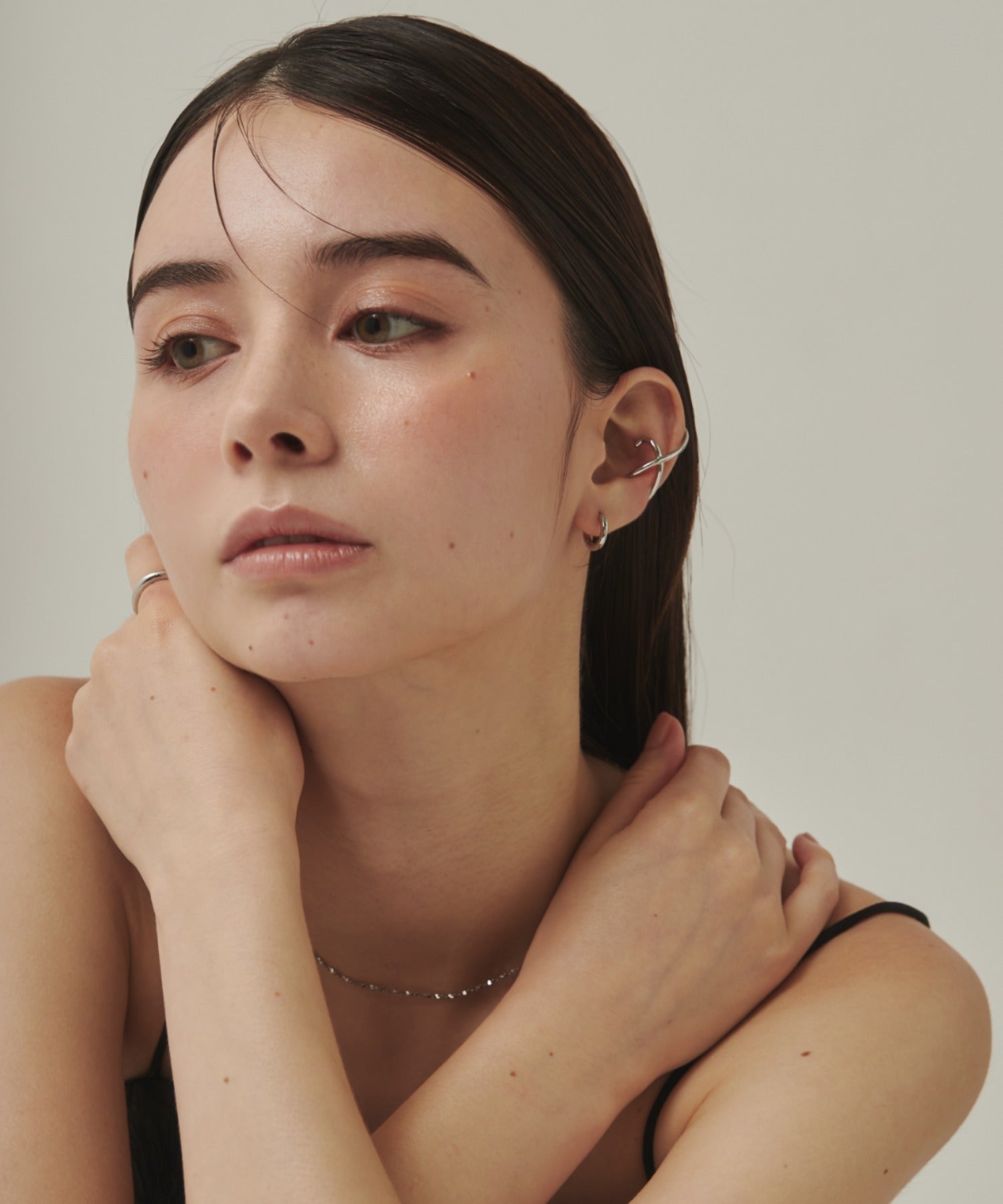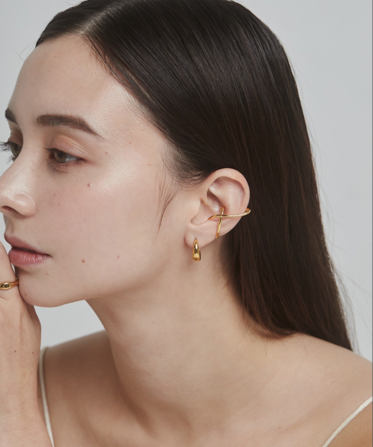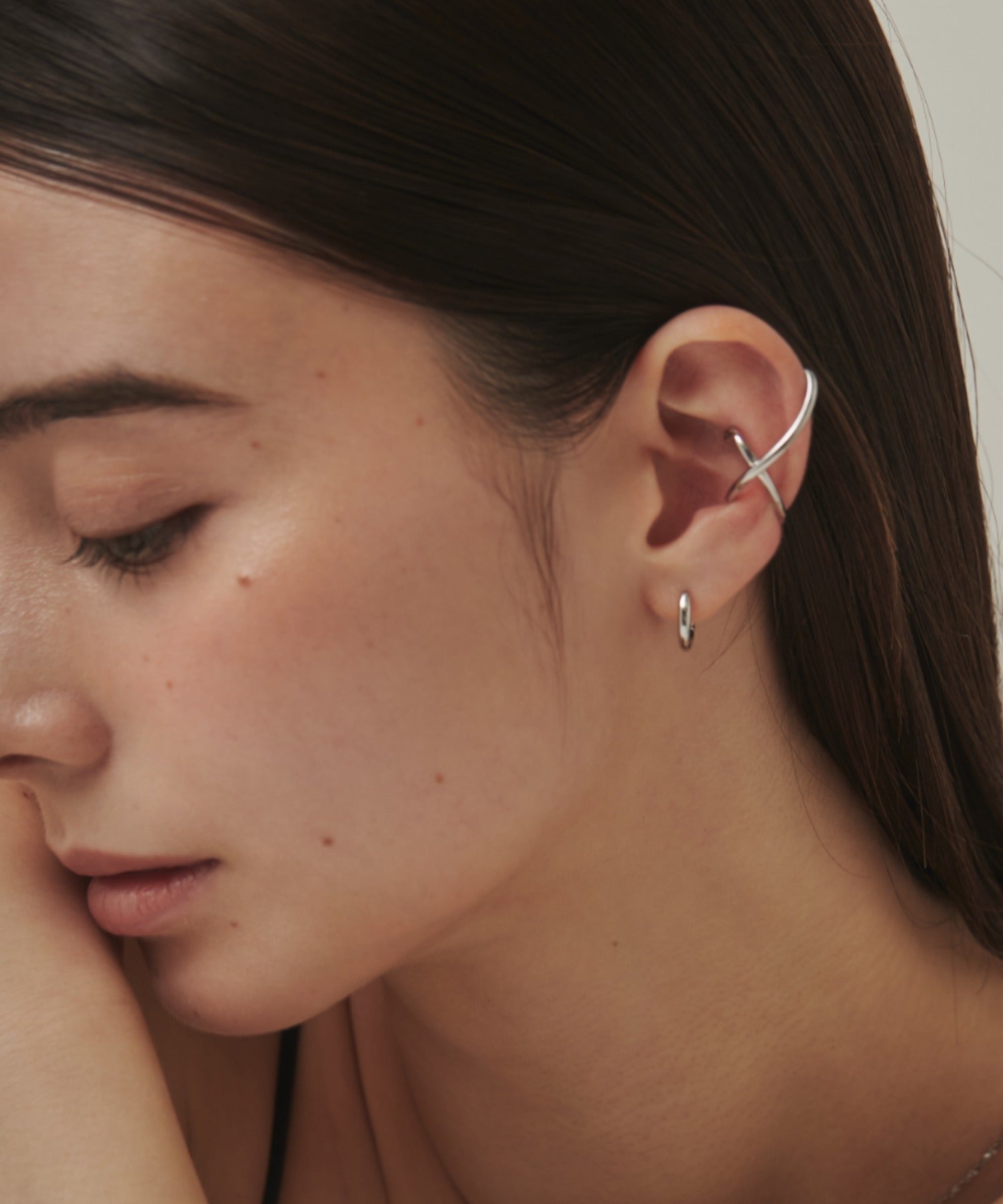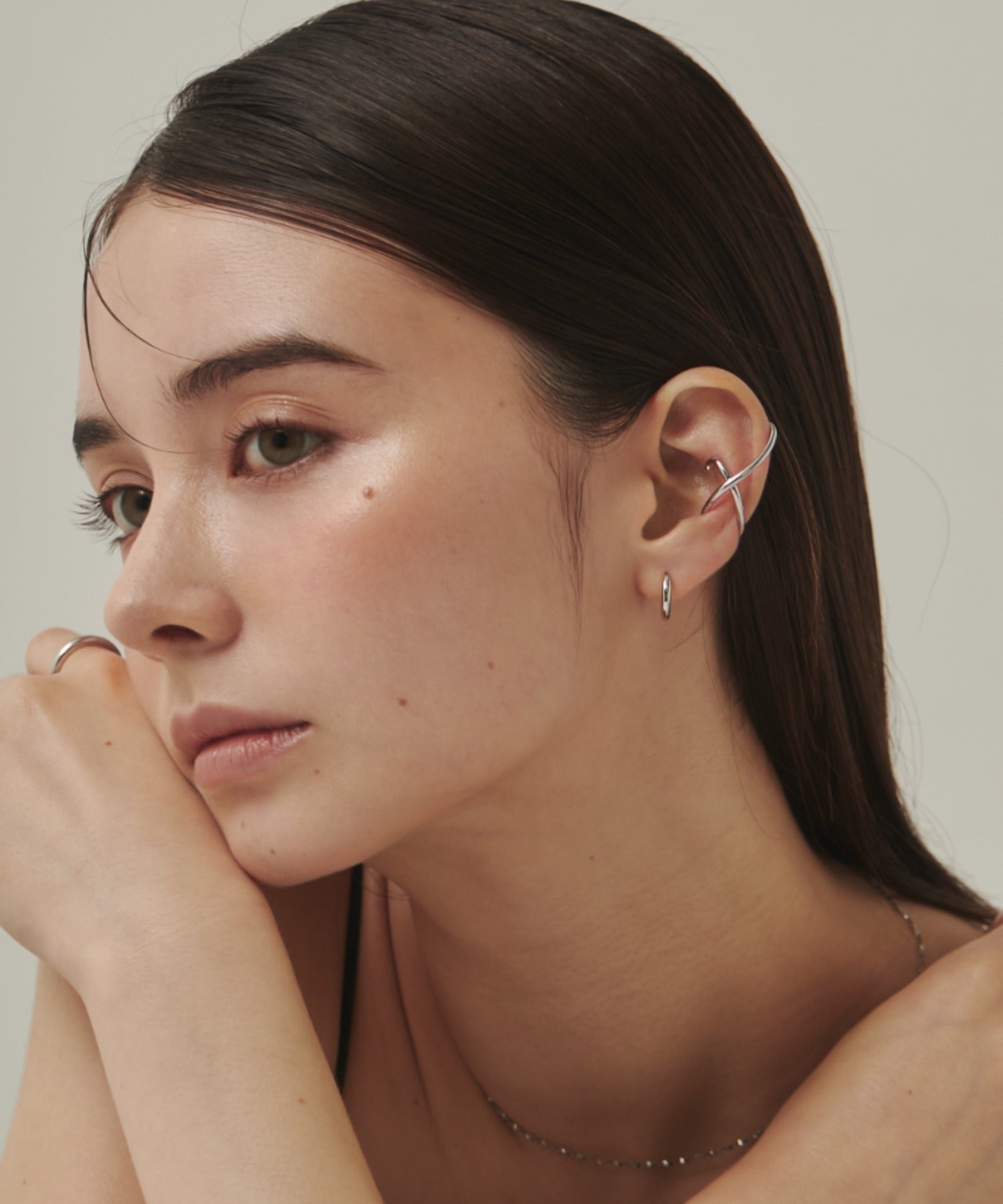 ニュアンス感と抜け感がスタイリッシュな印象のイヤーカフ。