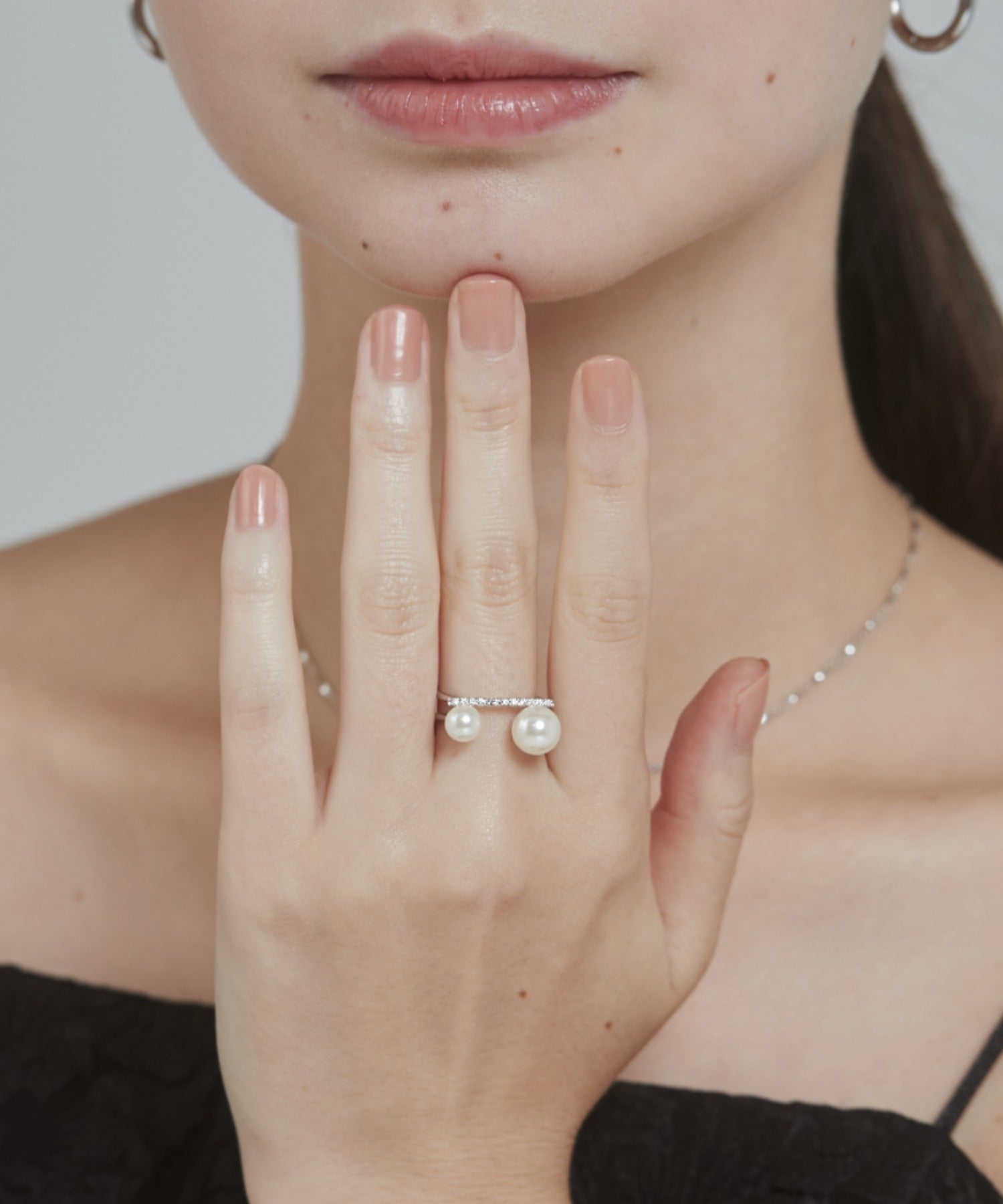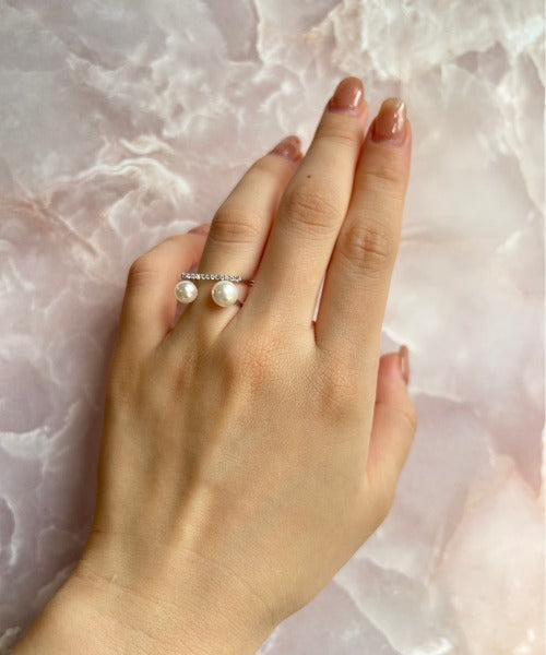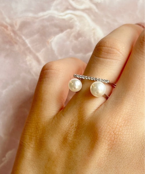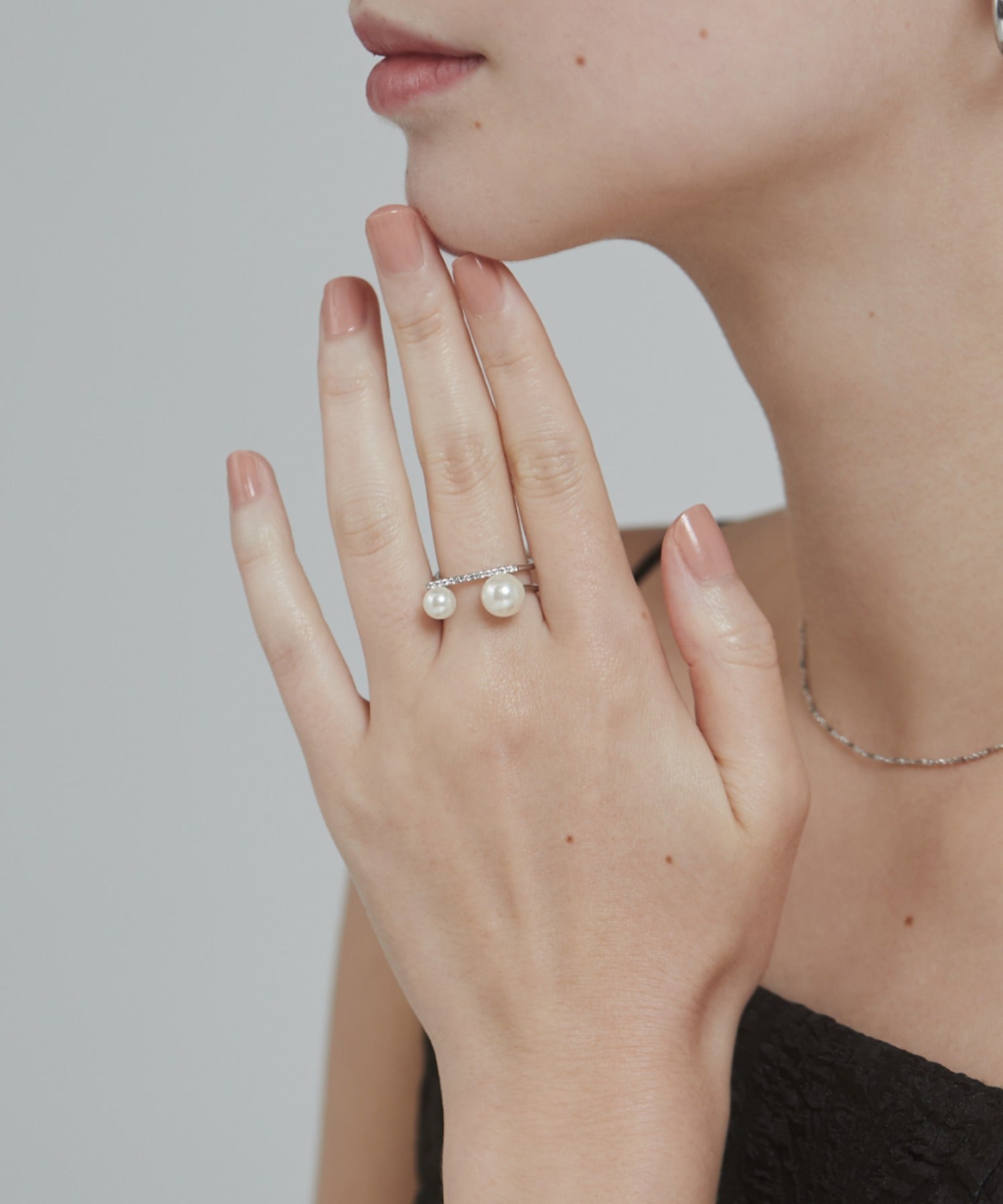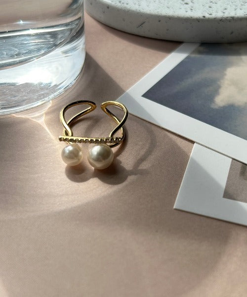 ビジューダブルパール リング