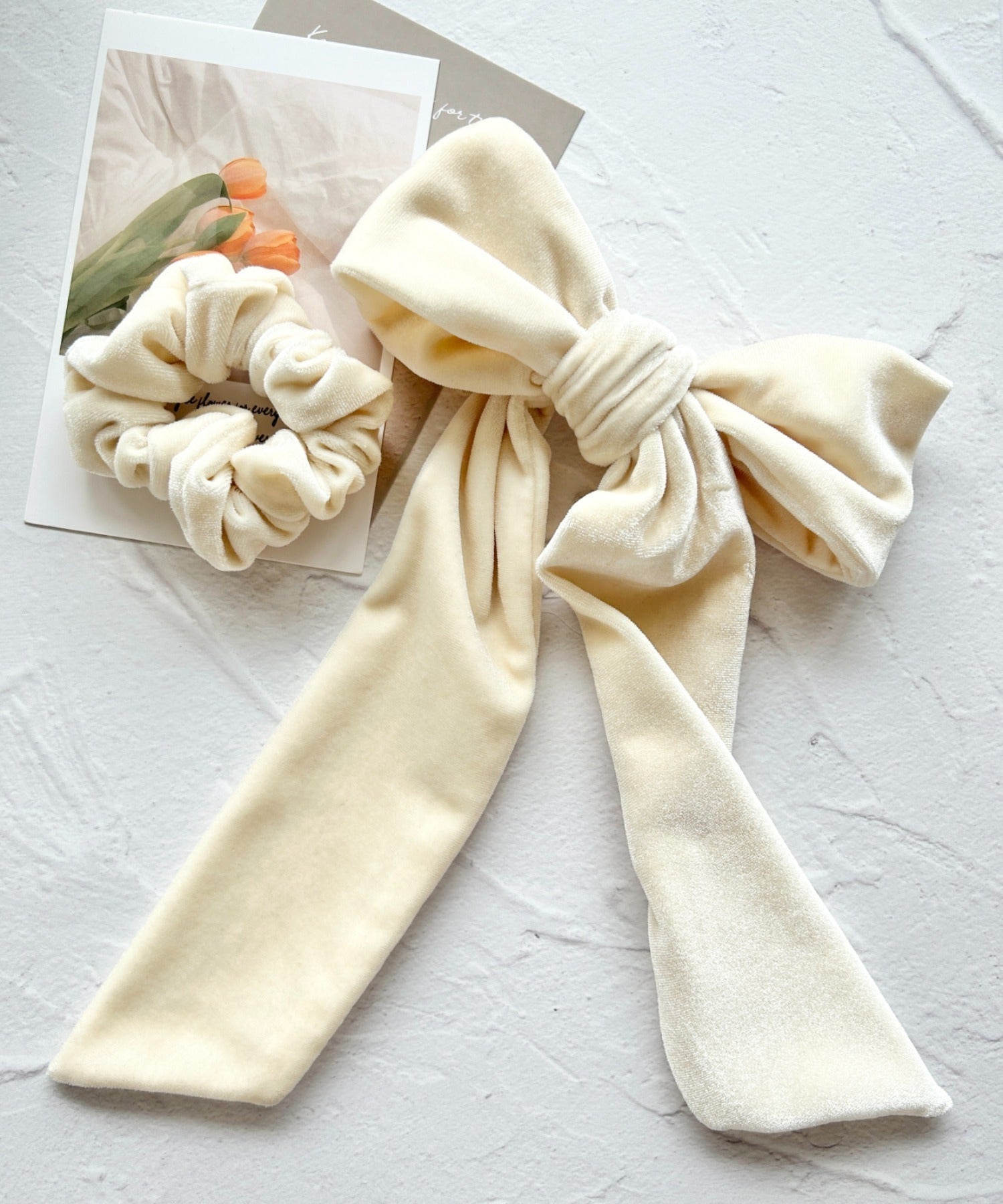 リボン結びが苦手な方はシュシュに好きな形に結んでから髪をまとめるのがおすすめ◎
