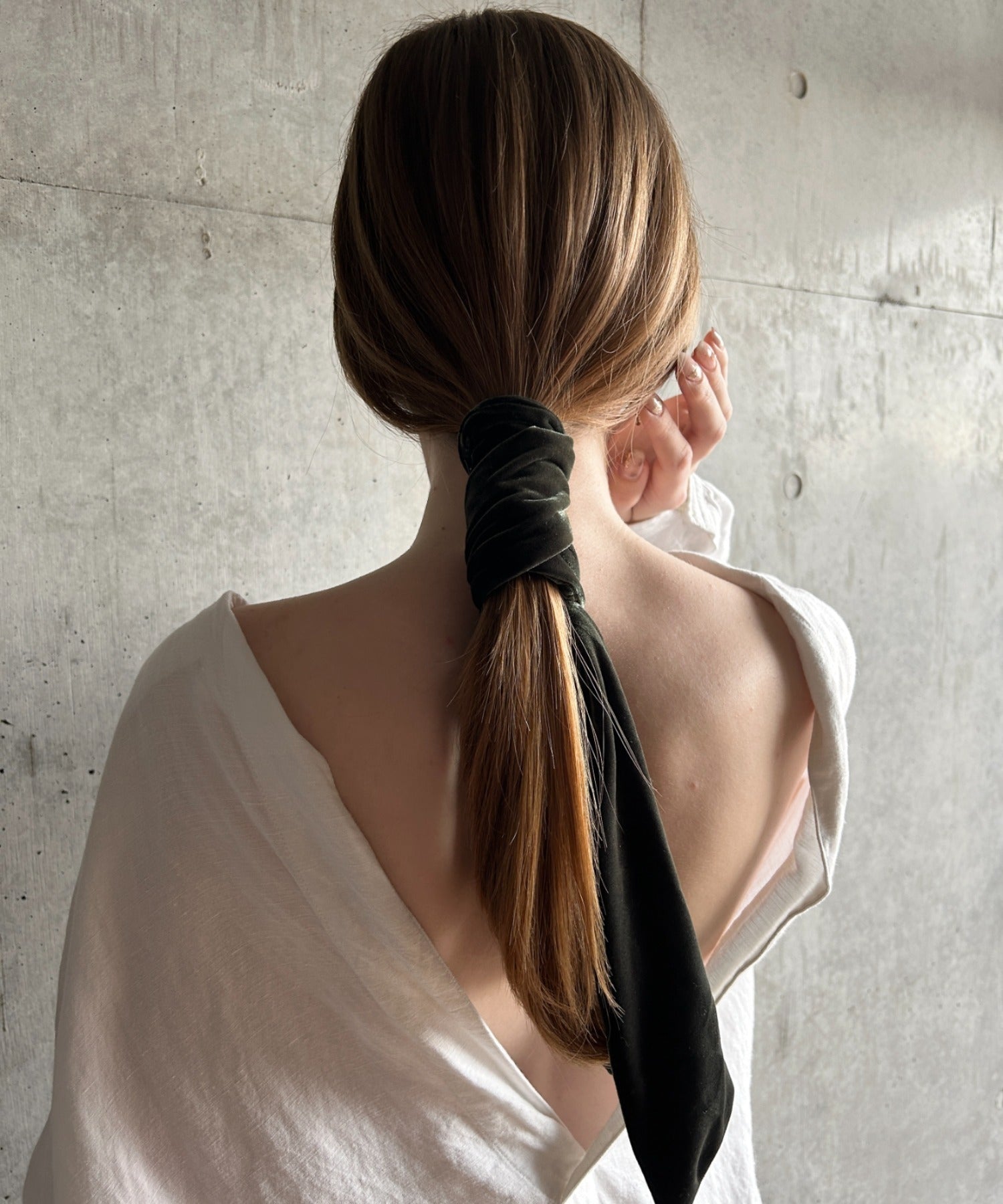 吸い付くような なめらかな手触りと美しい光沢感は、普段のポニーテールに結ぶだけでもぐっとおしゃれな印象になります♡